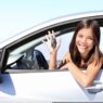 Sourire-location-de-voiture femme en voiture avec des clefs a la main